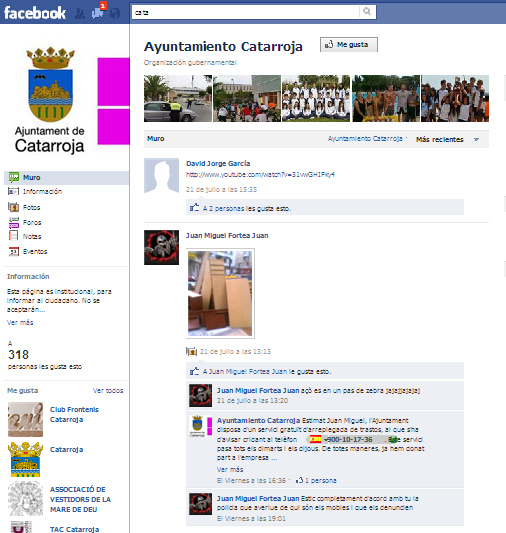 La política tampoco ha sido ajena a este cambio de tendencia experimentado por la población. Los que fueron más rápidos en entender el fenómeno son los que ahora se encuentran en una situación de privilegio, de ventaja con respecto al resto. Los ayuntamientos de la comarca de L´Horta son un ejemplo claro. Algunos como Torrent, Picassent o Picanya ya llevan cierto camino recorrido y son los que en la actualidad mayores seguidores acumulan. Otros han llegado un poco más tarde pero quizá hayan entendido mejor la virtud principal del llamado entorno 2.0, la interactividad. Catarroja, por ejemplo, aprovecha los comentarios para solucionar on-line las dudas y preocupaciones de sus vecinos.