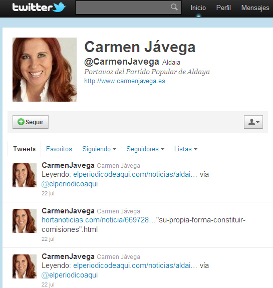A pesar de ello, Alaquàs, Burjassot, Catarroja, Torrent, Alfafar o Silla tienen abiertos sus perfiles para informar, algunos de ellos a diario, sobre las cuestiones locales que pueden interesar a sus vecinos. En el terreno personal, muy pocos de nuestros políticos locales utilizan esta tribuna pública. Además de Jávega, Rafael García, teniente de alcalde del ayuntamiento de Burjassot es otro de los más introducidos en Twitter con cerca de 300 seguidores.